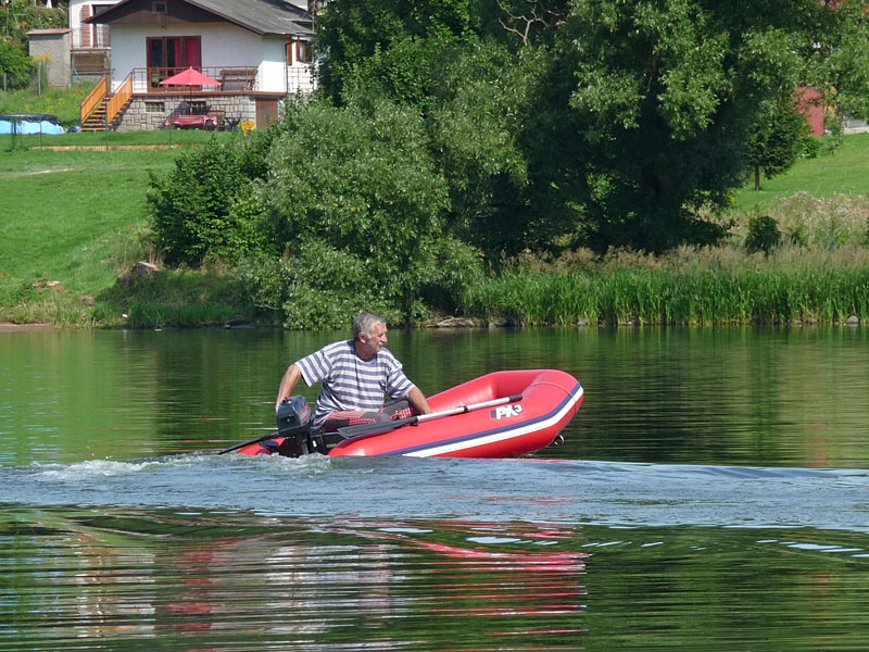 Neděle byla věnovaná řízení člunu s motorem a plavbě ve skluzu. Luboš s Ivonou vytáhli další nafukovací člun a praktická část začala. To, že dámská část osazení nakonec zůstala jen u startování a chcípání motoru a řídila loď každá zcela samostatně (rozuměj: Luboš vše pozoroval a trpěl na břehu) jen zanedbatelnou chvilku, je pravděpodobně možné přičíst některým manévrům končícím v rákosí. Pánové se o skluz alespoň pokusili, ale rozhodně mají ještě nějaké rezervy. Čemu bychom se věnovali příští rok, že?