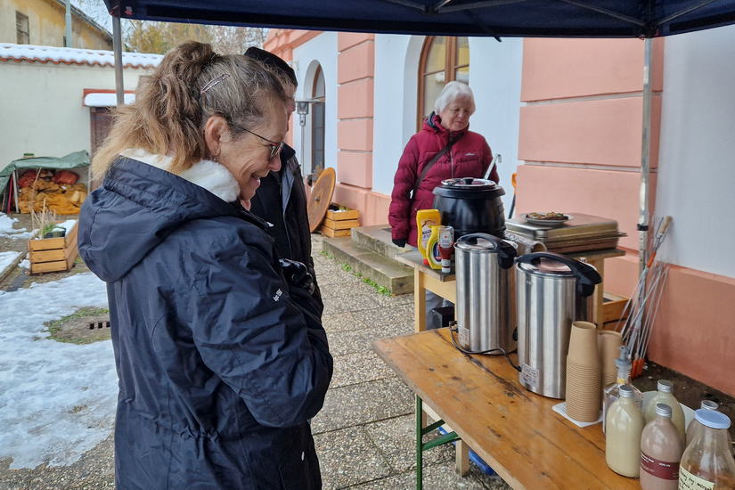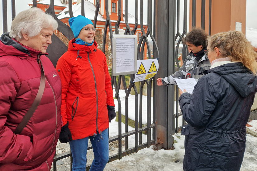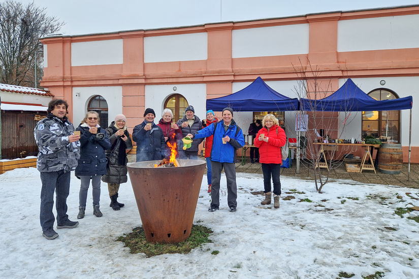 Další prohlídku zahrady – štěpnice a bludiště – nám zatrhl hlídač a nevybíravými slovy nás hnal pryč. Prý moc dobře víme, že je zahrada uzavřena, sledoval nás přes kamery, jak si čteme ceduli u hlavní brány. Náladu jsme si spravili výborným svařákem, ohřáli se u ohně a vydali se za dalšími zajímavostmi toulek.
