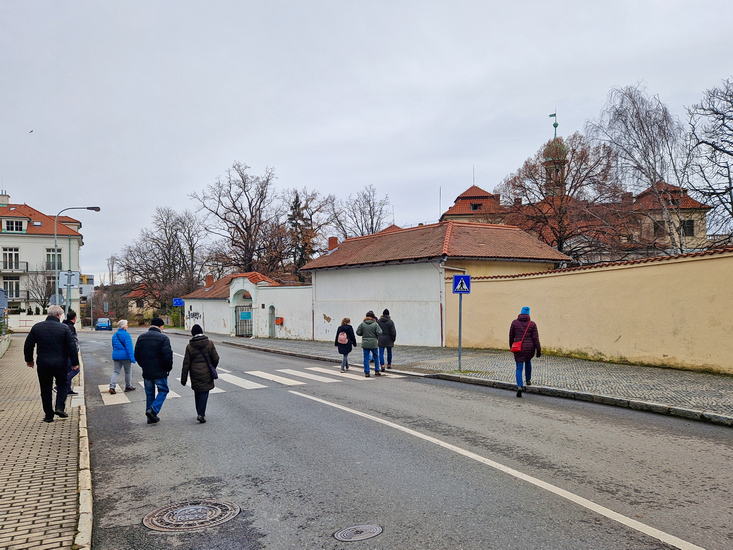 U vojenské nemocnice jsme opustili Veleslavín a vstoupili do Břevnova. Obešli nemocnici, okoukli Rothmayerovu vilu (nikoliv rotvajlerovu – jak se nám někteří snažili vnutit) a sestoupili po svahu do restaurace U Markéty. Tam jsme dobrým jídlem a mokem završili letošní toulky.