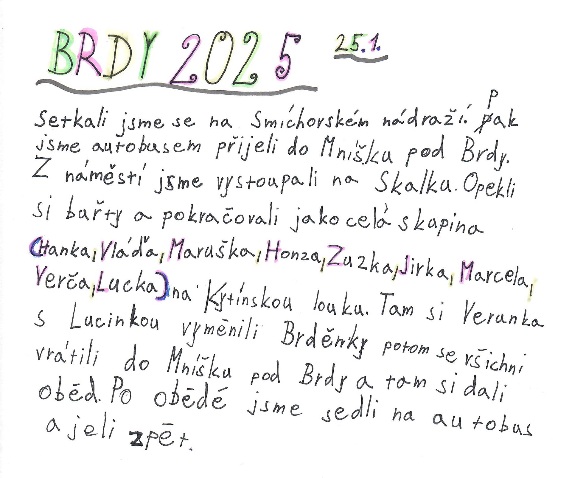 Z náměstí jsme vystoupali na Skalku Opekli si buřty Tam si Verunka s Lucinkou vyměnily Brděnky Brdy 2025 (25. 1. 2025) Veronika Reslerová 2. února 2025 Stalo se nedávno