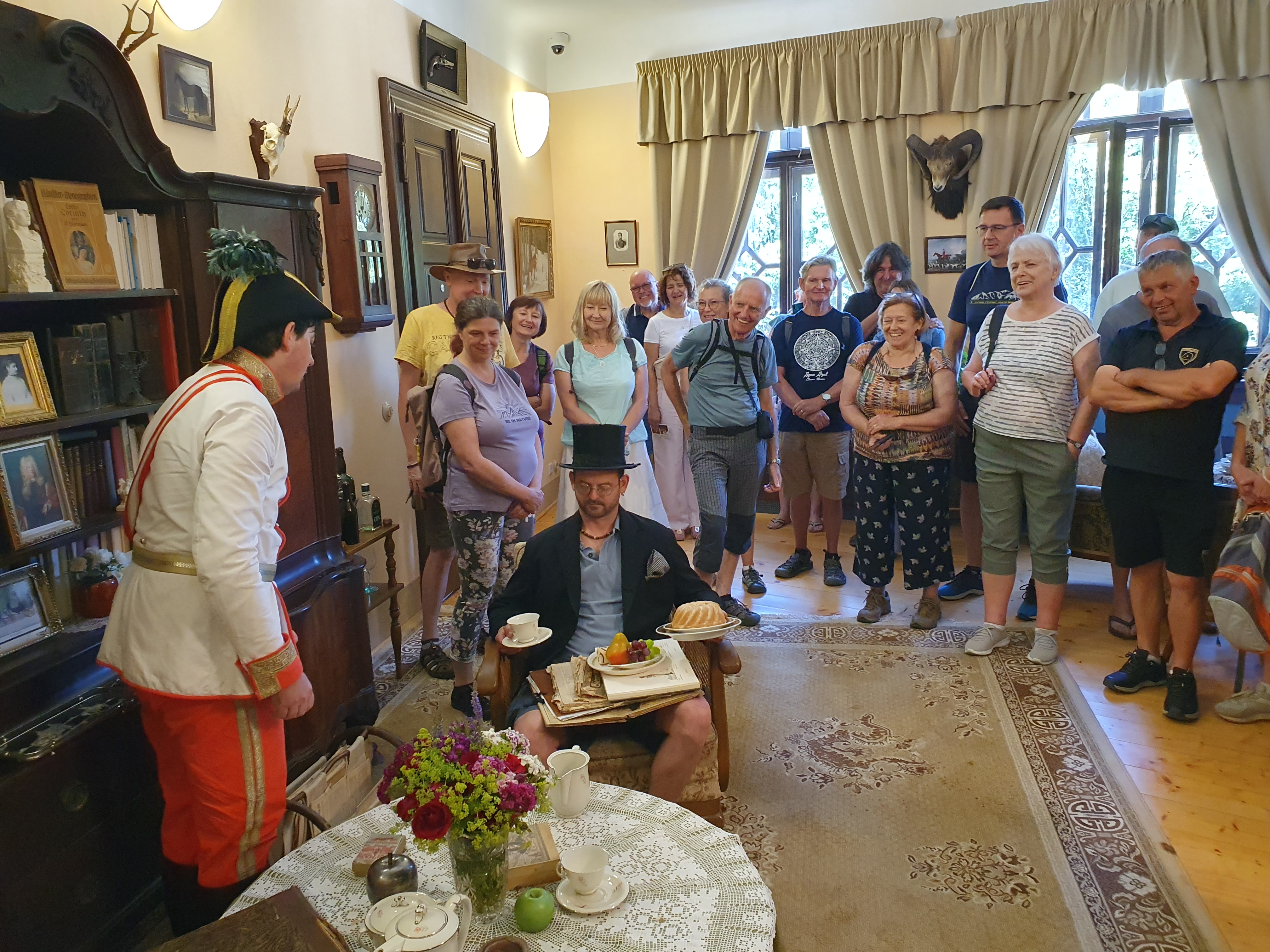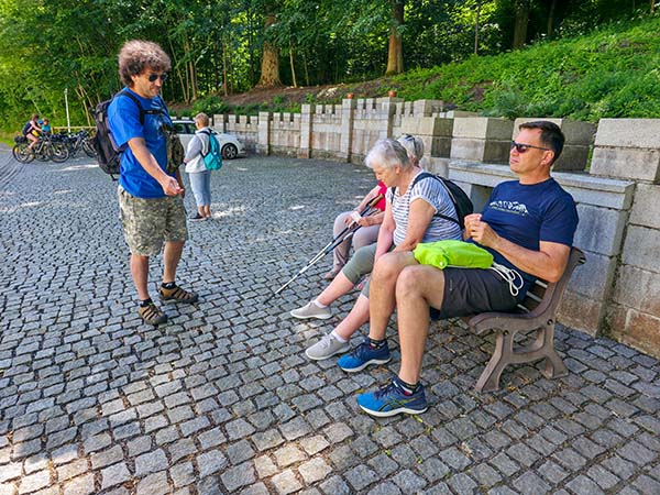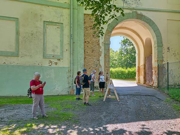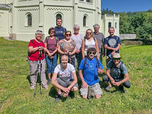 Po snídani na terase příjemného ubytování v Regionálním vzdělávacím a informačním středisku v budově první české menšinové školy v Tachově (https://www.revis-tachov.cz/) jsme se vydali na pěší cestu údolím Mže až do Světců. Po Zlaté stezce – Goldsteig prý kromě kupců směřujících za obchodem do Bavorska jezdil na koni i kníže Alfréd I. Windischgrätz kontrolovat stavbu své jízdárny. Cesta uběhla rychle a tak jsme před prohlídkou stihli kromě společného fota i odpočinek a nákup suvenýrů.