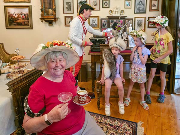 Prohlídka jízdárny byl nezapomenutelný zážitek. V uniformě oděný průvodce sršel energií, vtipy a neváhal vtáhnout do téměř hereckého představení malé i velké návštěvníky. Za 1,5 hod jsme prolezli jízdárnu doslova od sklepa po půdu a kromě nohou mohutně posílili i bránici. Vydané kalorie jsme doplnili v místní kavárně a mohli vyrazit na další cestu.