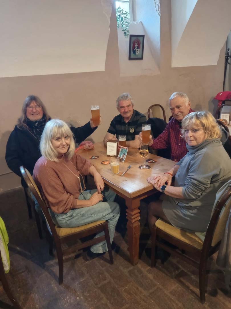 V restauraci Bruska, kam Zdeněk chodíval jako dítě s rodiči, protože nedaleko jeho rodina bydlela, na nás už čekala zamluvená místa a jídelní lístek, ve kterém několik lidí zaujaly nejprve domácí halušky. Bohužel ten den je ale neměli v plánu vyrábět, tak si nakonec všichni ke své spokojenosti vybrali z další restaurační nabídky.