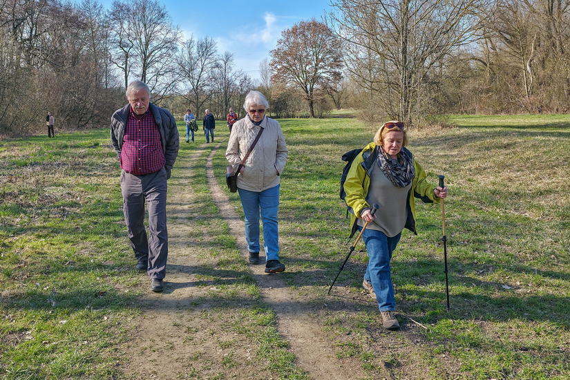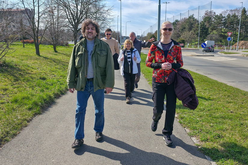 Zhruba po hodině jsme se zvedli a pokračovali v 7 km dlouhém putování stále východním směrem ke druhé zastávce. Sluníčko svítilo, jarní příroda se probouzela, pořád bylo co k povídání, prostě náramná pohoda. Já se Zuzkou S. jsme si trasu zkrátily popojetím busem do Dubečku a pak všichni proti proudu Říčanského potoka k Podleskému rybníku.