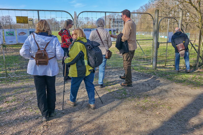 Pod hrází rybníka jsme se u nevelké ohrady poučili o důležitosti výzkumu chování jelena milu a jelena evropského, pokochali jsme se klidnou a čistou hladinou rybníka a pokračovali k Uhříněvsi. Na kraji obory jsme nakoukli přes zeď do nepřístupného židovského hřbitova.