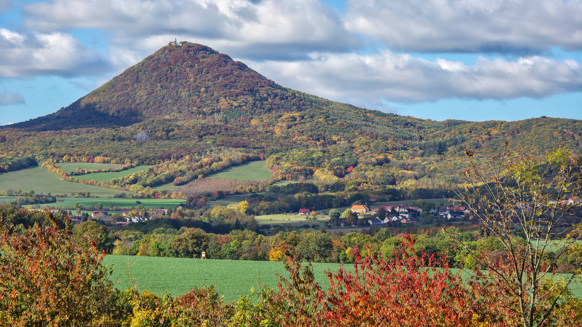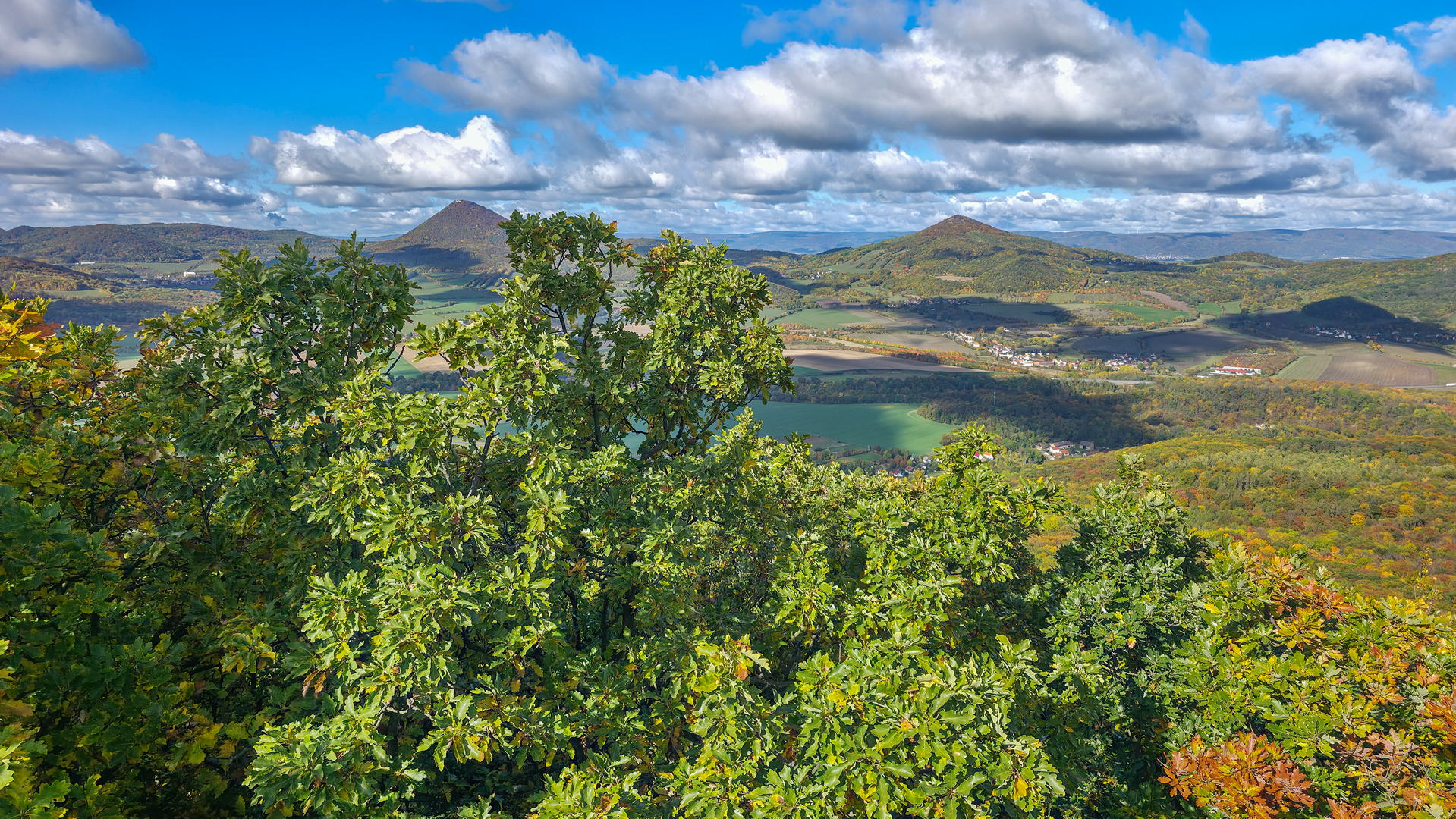 Milešovka (837 m) a Kletečná (706 m) z vrcholu Lovoše